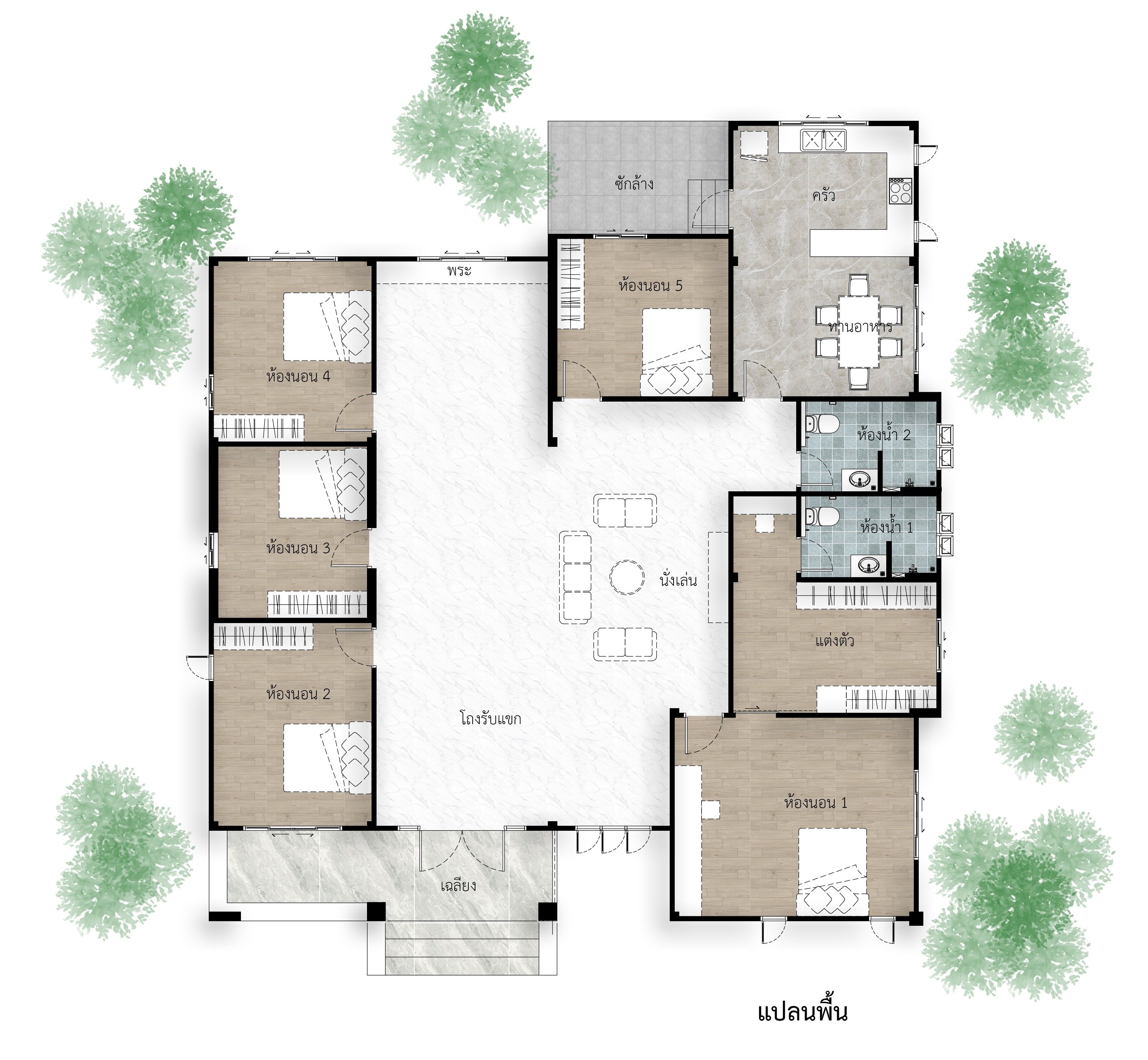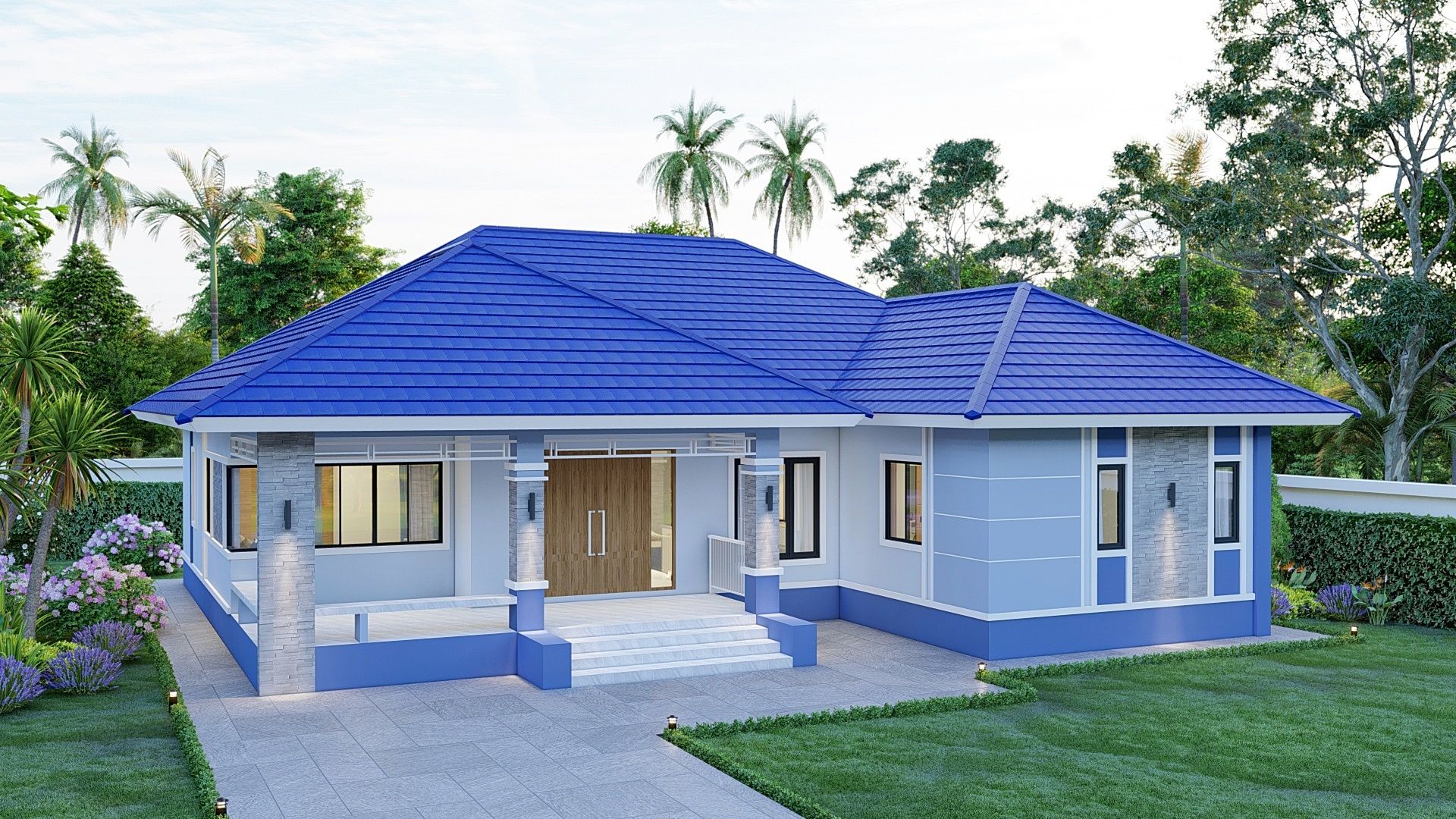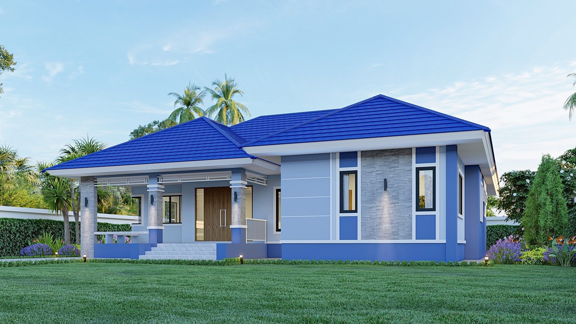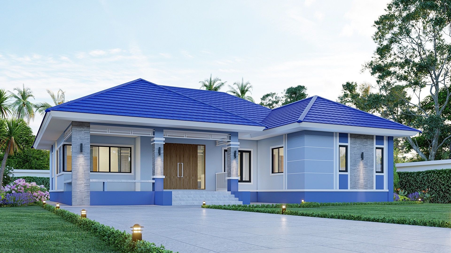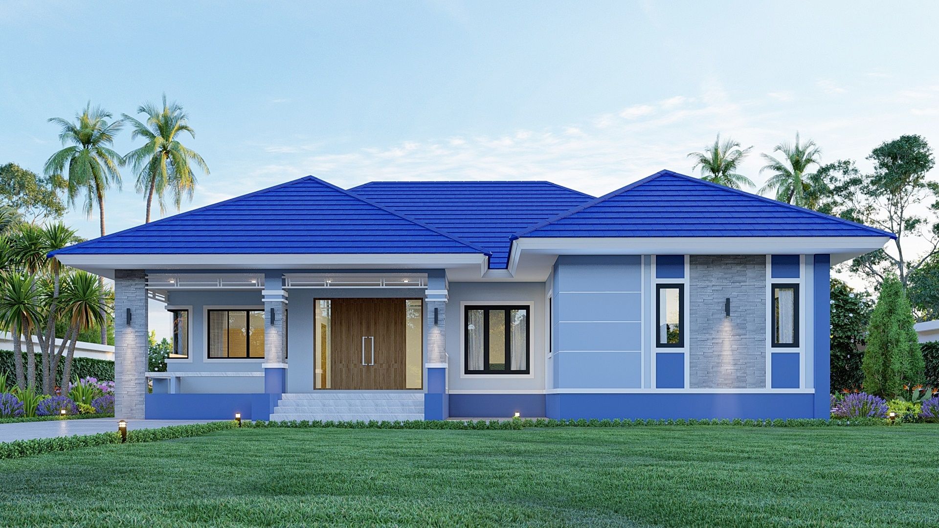 บ้านชั้นเดียวที่มีดีไซน์โดดเด่นและทันสมัย การออกแบบเป็นเอกลักษณ์ สร้างบรรยากาศสดชื่นและผ่อนคลาย ฟังค์ชั่นเน้นความเรียบง่าย