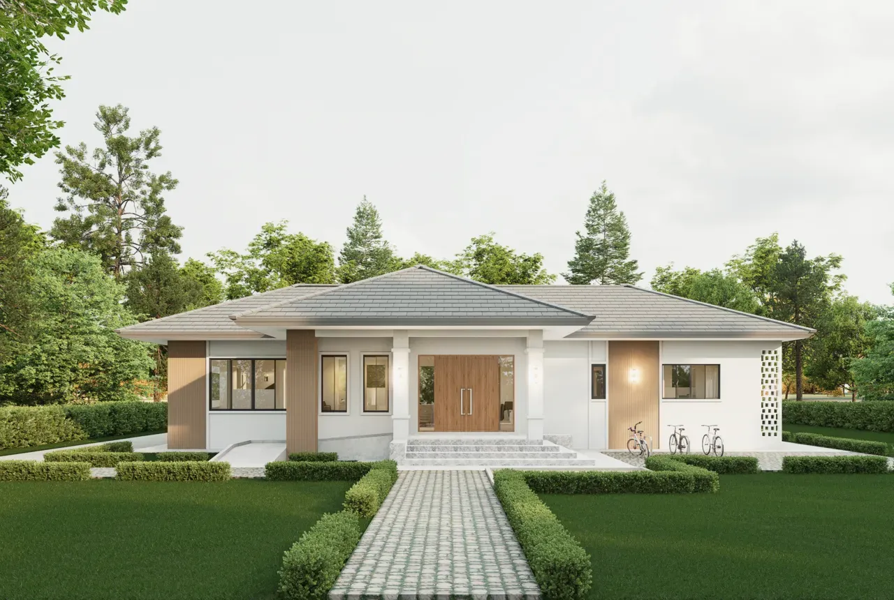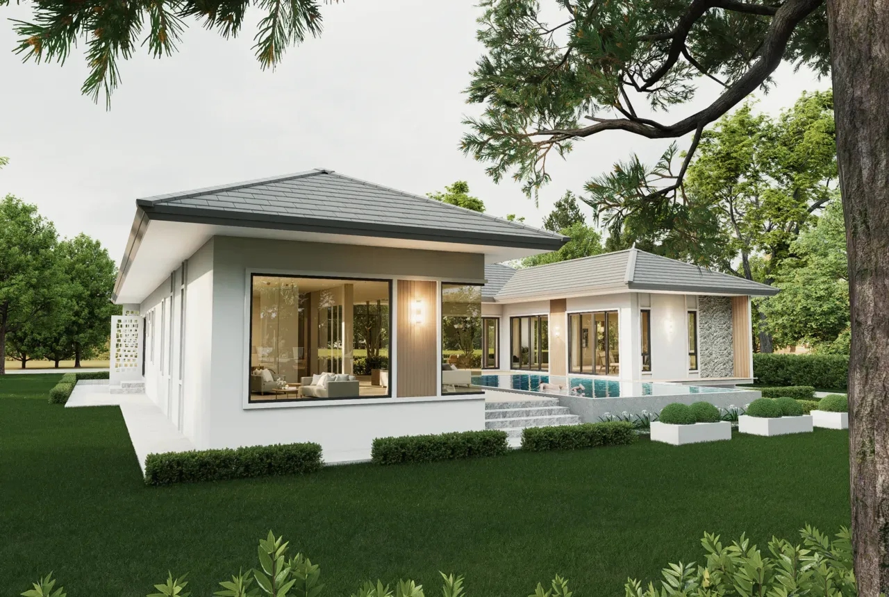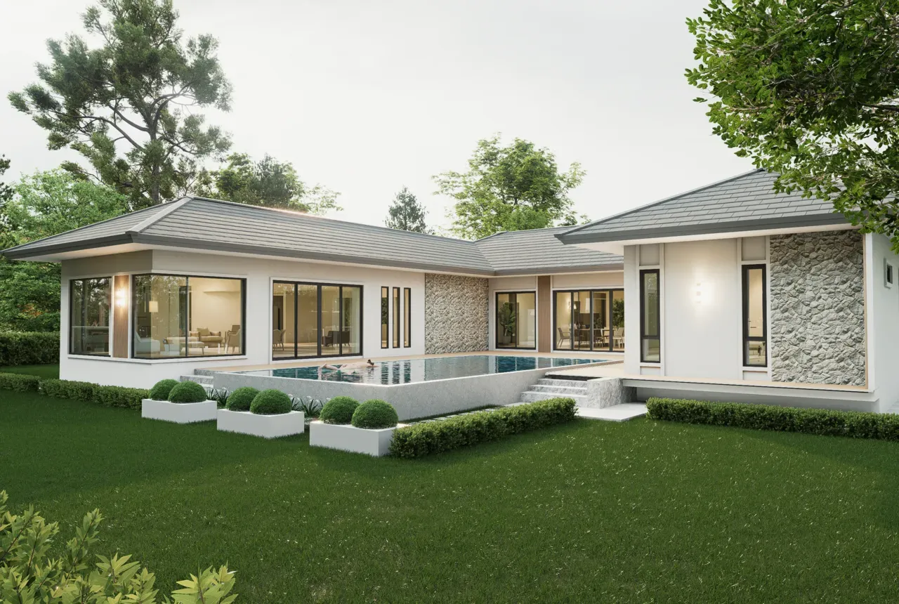 แบบบ้าน, บ้านชั้นเดียว, สระว่ายน้ำ, สวยราคาประหยัด, บ้านหัวหิน, บ้านประจวบคีรีขันธ์, สร้างบ้านนครปฐม, สร้างบ้านราชบุรี, สร้างบ้านเพชรบุรี, บ้านสวยออกแบบตามสไตล์, ผู้รับสร้างบ้านมืออาชีพ, สร้างบ้านคุณภาพดี, รับสร้างบ้านครบวงจร, สไตล์โมเดิร์น, สไตล์คอนเทมโพรารี่